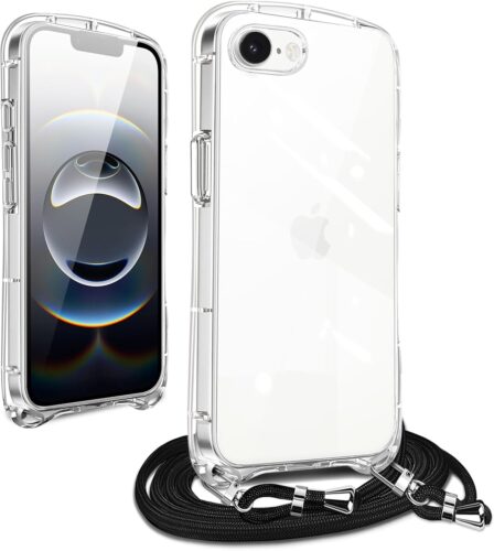 7.SHENGKAWANG iPhone 17e/16e 用 ショルダー付きクリアケース(全透明・斜めがけ/首掛け対応)