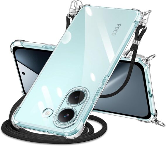 7.NISIILNG POCO X8 Pro ショルダー付きスマホケース(クリアTPU × 斜めがけストラップ)