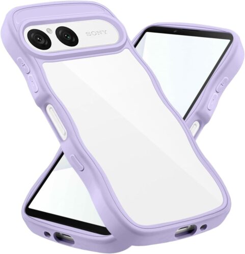 For SONY Xperia 10 VII ケース クリア かわいい SO-52F スマホケース 波状フレーム うねうね 耐衝撃 滑り止め 人気 可愛い エクスペリア 10 VII カバー 落下防止 ワイヤレス充電対応 (パープル)